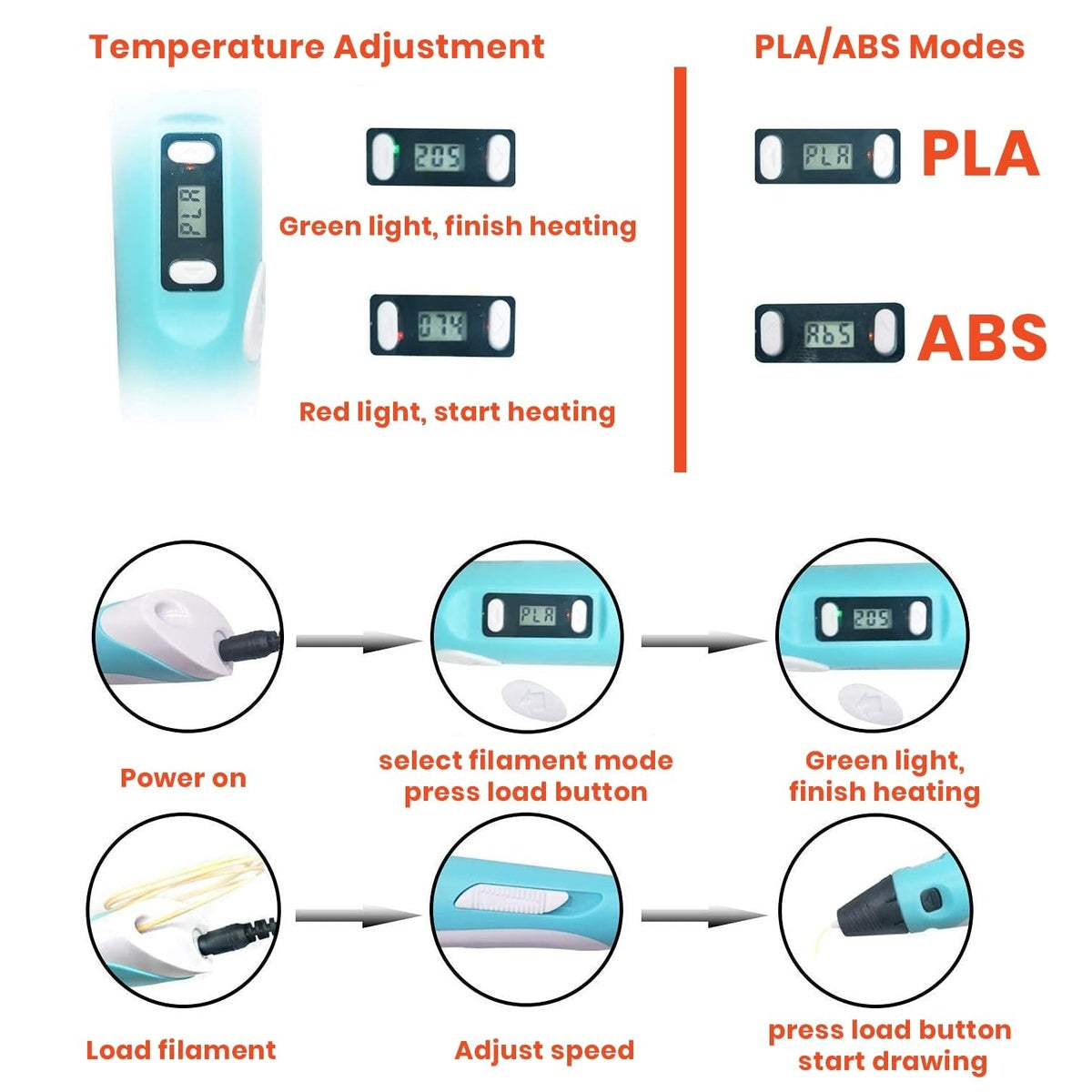 The pen operates at a controlled temperature under 220°C with ergonomic grip, preventing burns and ensuring safe handling for children.