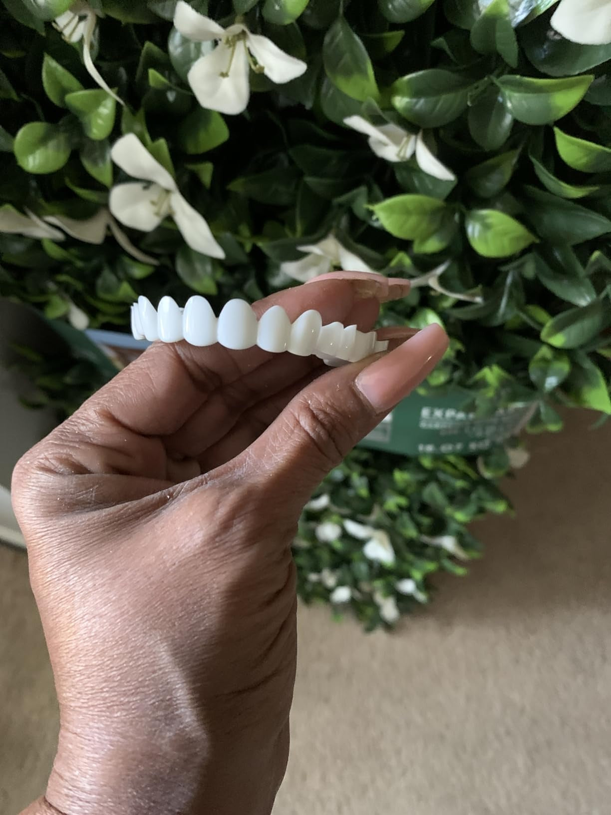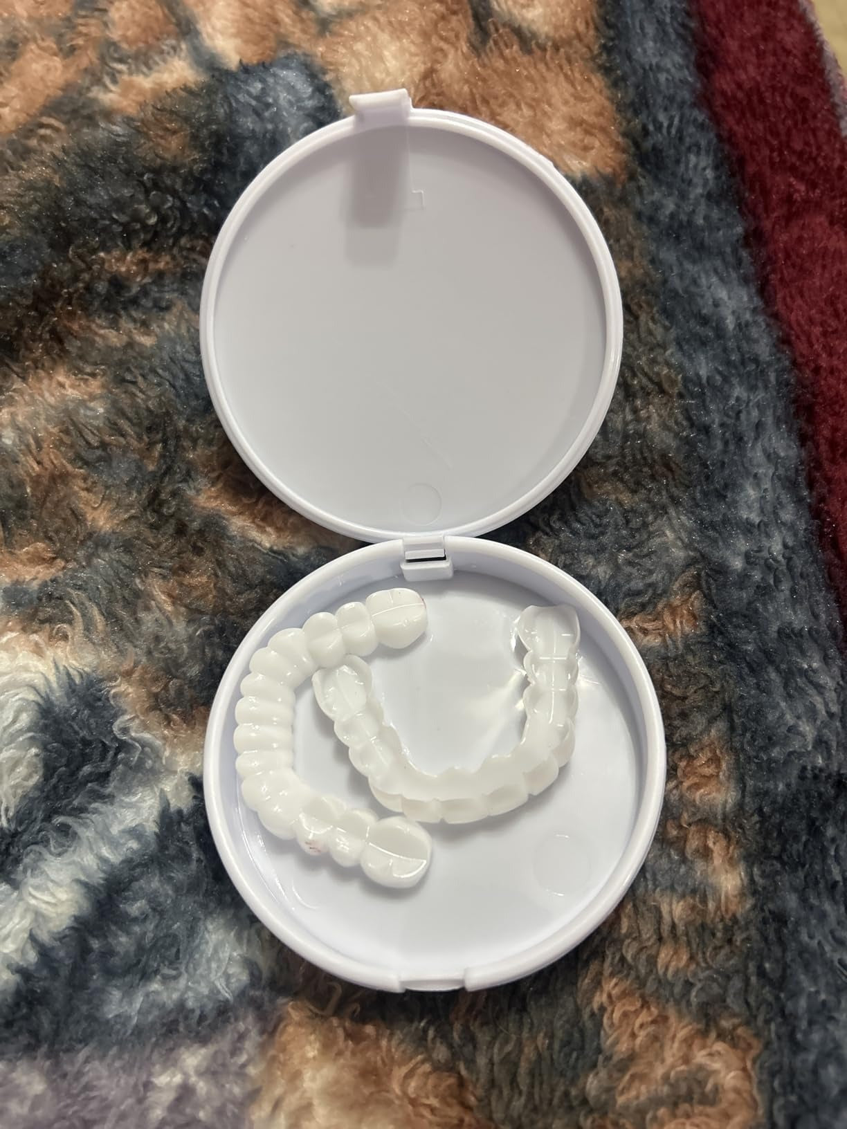 Thermal moldable material adapts to your unique dental shape. Once cooled, it holds firmly and blends naturally for a personalized, seamless look.