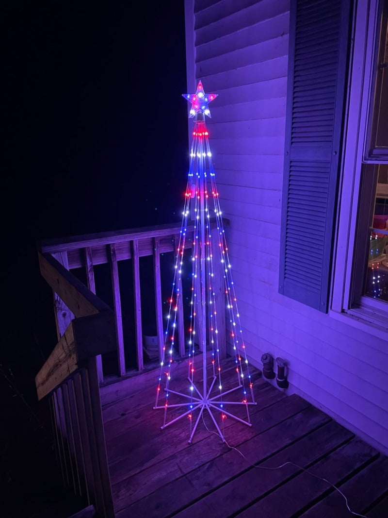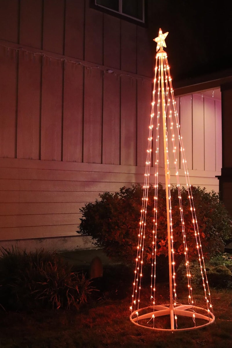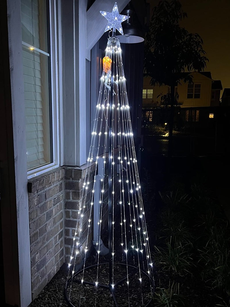 Includes a detachable iron stand, connection rods, screws, stakes, and a top star for easy installation. The collapsible design makes setup effortless and allows compact storage after the holidays.