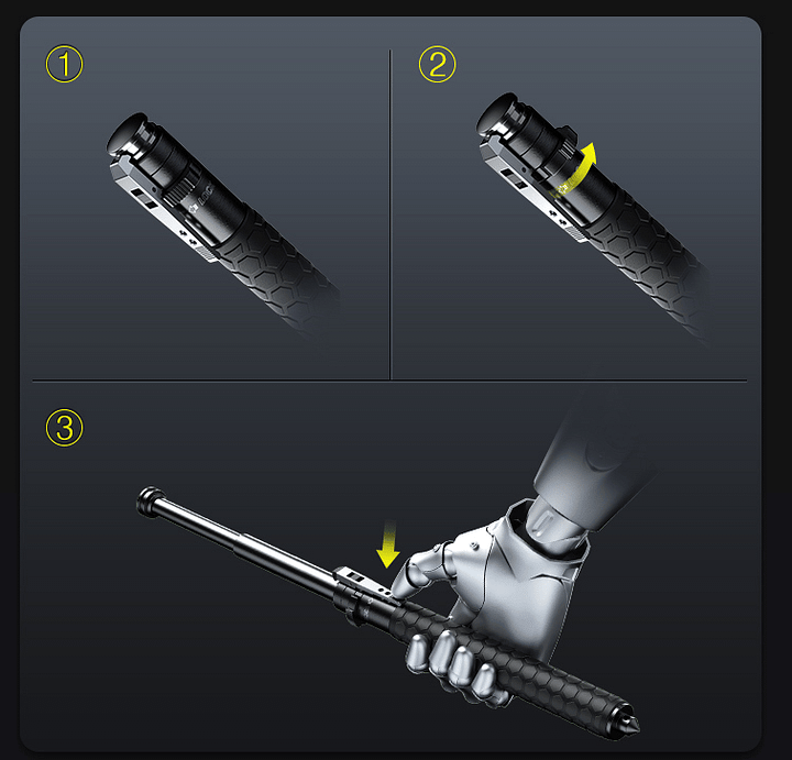 If you're looking for a very safe outdoor walking tool with a good easy grip, you'll love our automatic spring-loaded self-defense hiking stick that provides you with a sense of security. You can use it on hikes or outdoor trips, or use it in your car, where its durable frame and compact design make it easy to carry and has a long life span.