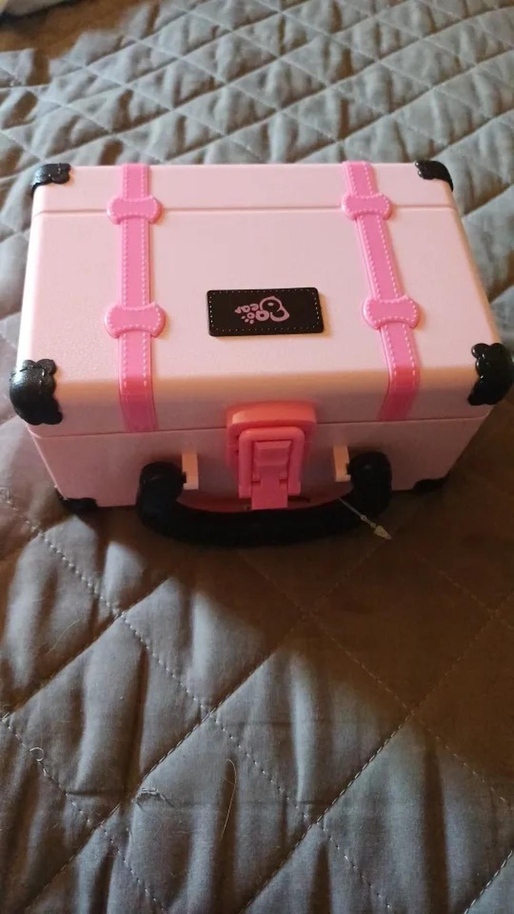 The pink suitcase keeps every piece neatly organized and lightweight, making it perfect for travel, playdates, or family visits.