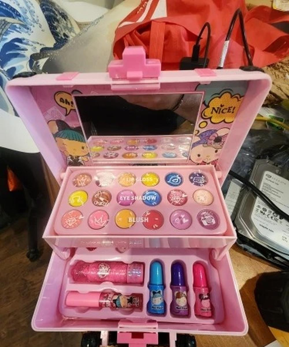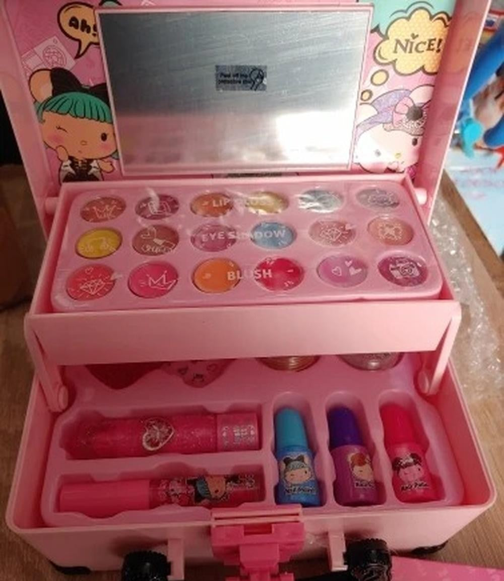 children enjoy organizing and carrying their makeup suitcase anywhere.